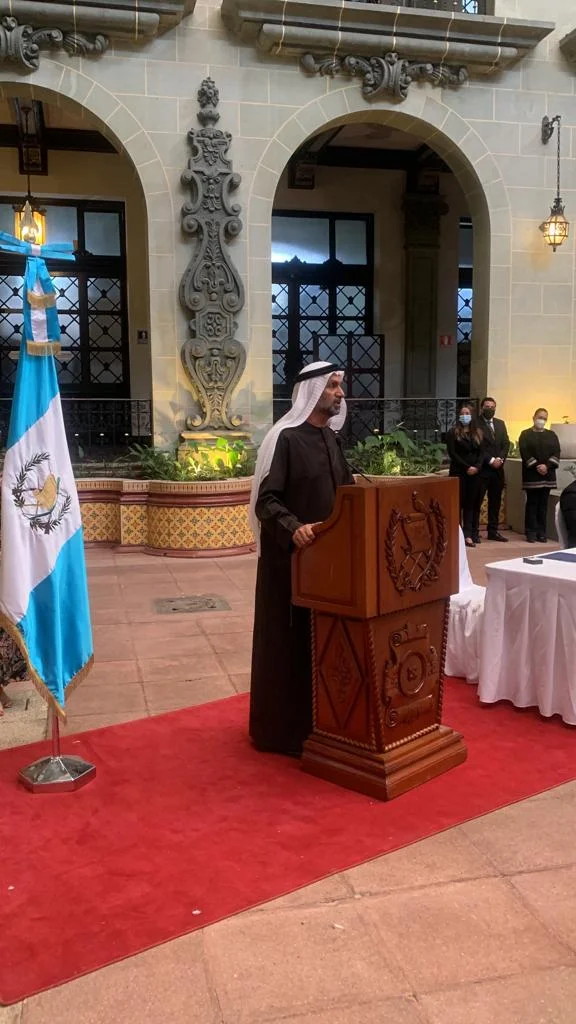 الجروان يقدم لرئيس جمهورية جواتيمالا مسكوكات الخمسين عام للقادة المؤسسين لدولة الامارات ، ورئيس برلمان جواتيمالا يكرم الجروان