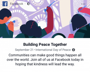 يحتفل موقع التواصل الاجتماعي الشهير “فيسبوك”، باليوم العالمي للسلام المقرّر انعقاده اليوم، حيث خصّصت الجمعية العامة للأمم المتحدة يومًا لتعزيز مُثل وقيم السلام في أوساط الأمم والشعوب فيما بينها.