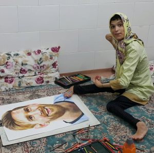 فاطمة حمامي، فتاة من مدينة كاشان بمحافظة أصفهان استطاعت أن تبدع بفنها ولكن بشكل مختلف، فهي فتاة مُقعدة بسبب إعاقتها الجسدية ولكنها تملك موهبة الرسم ولكن بأصابع قدميها، وما يميز موهبتها دقتها العالية في رسم البورتريهات أو ملامح الوجه.