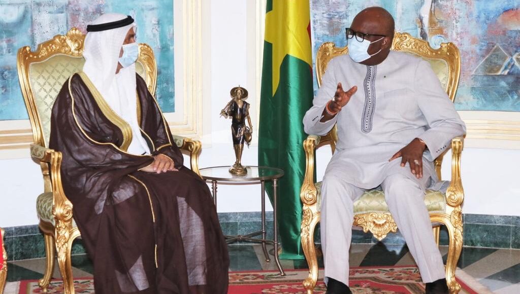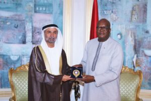 استقبل فخامة السيد روش مارك كريستيان كابوري رئيس جمهورية بوركينا فاسو رئيس المجلس العالمي للتسامح والسلام معالي احمد بن محمد الجروان في العاصمة البوركينية واغادوغو ، كما حضر اللقاء وزير الخارجية البوركيني السيد الفا باري.