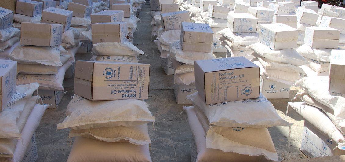 La ayuda consiste en unos 43 camiones cargados con raciones de alimentos y bolsas de harina de trigo, además de otros productos básicos.