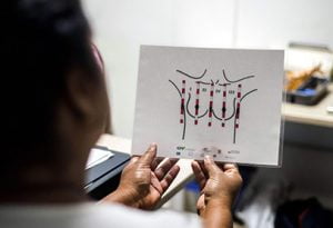 Leidy palpe les seins de ses patientes en se guidant avec un ruban jaune et rouge, qui comporte un motif en relief à chaque centimètre pour situer les éventuels nodules. Lorsqu’elle détecte une masse suspecte, elle la signale au médecin qui, selon les cas, peut ordonner des analyses supplémentaires pour confirmer ou non un cancer. L’examen initial dure jusqu’à 45 minutes contre 10 pour la méthode traditionnelle.