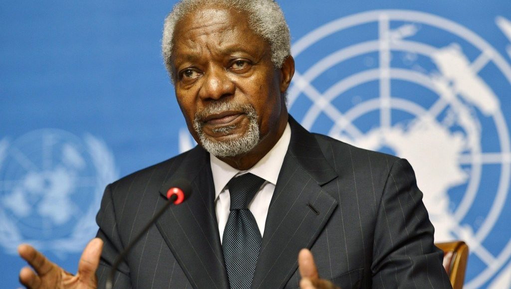 Le 1er janvier 1997, Kofi Annan succède à Boutros Boutros-Ghali à la tête de l’ONU. En 2001, le diplomate et les Nations unis reçoivent conjointement le prix Nobel de la paix pour leur engagement en faveur de la paix dans le monde. « J’ai essayé de placer l’être humain au centre de tout ce que nous entreprenons : de la prévention des conflits, au développement et aux droits de l’Homme », avait-il déclaré, en acceptant le prix Nobel, à Oslo.