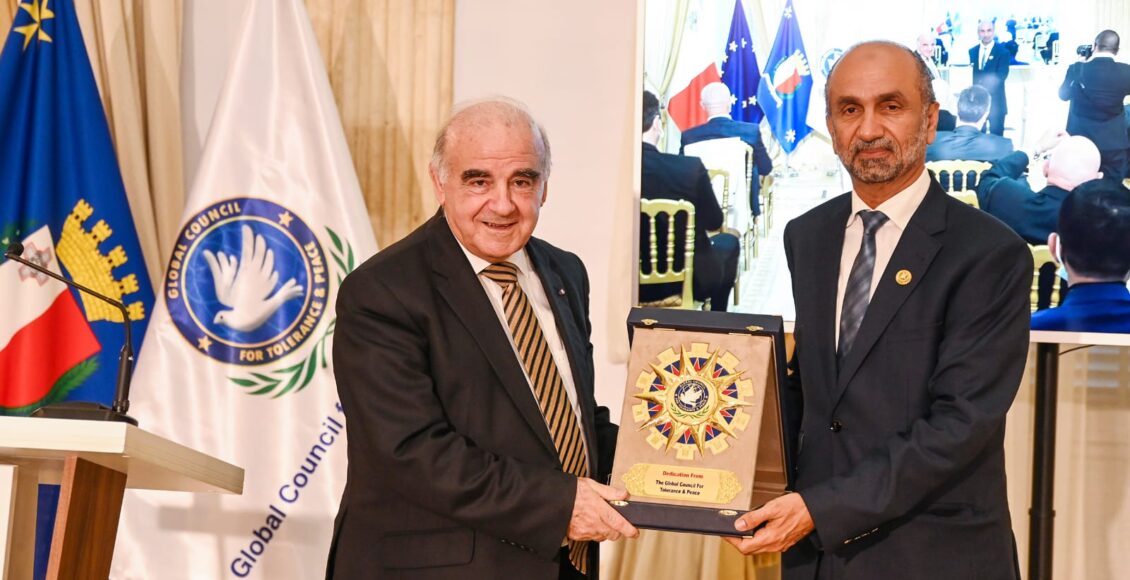 Au nom du Conseil Global pour la Tolérance et la Paix, le Dr George Villa, président de la République de Malte, AlJarwan a présenté le bouclier de la Journée internationale de la tolérance.